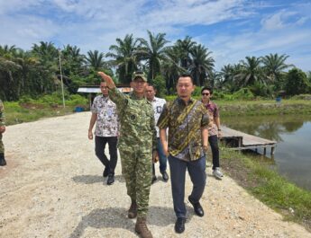 Tampak juga ikut dampingi Pj. Bupati Kampar Asisten II Setda Kampar Suhermi, Plt. Kabag Perekonomian Setda Kampar Purwoko, Winda Damelia dari Forum CSR Kampar, Sekcam Bangkinang Kota M. Sukrizal dan Lurah Bangkinang Suprapto dan PD. Aneka Karya Syafrudin.
