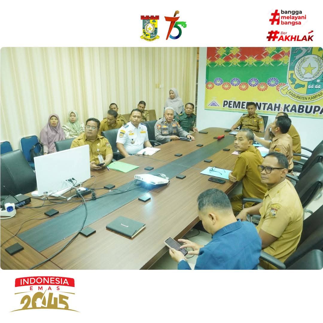 Bangkinang Kota, AuraPos.id – Bupati Kampar Ahamad Yuzar.S.Sos.MT mengikuti rakor inflasi terkait antisipasi cuaca ekstrem periode idul Fitri 1446 H melalui zoom meeting yang dipimpin langsung oleh Kemendagri Tito Karnavian di Ruang Rapat Asisten II Kantor Bupati Kampar Bangkinang Kota, Senin (10/3/2025).