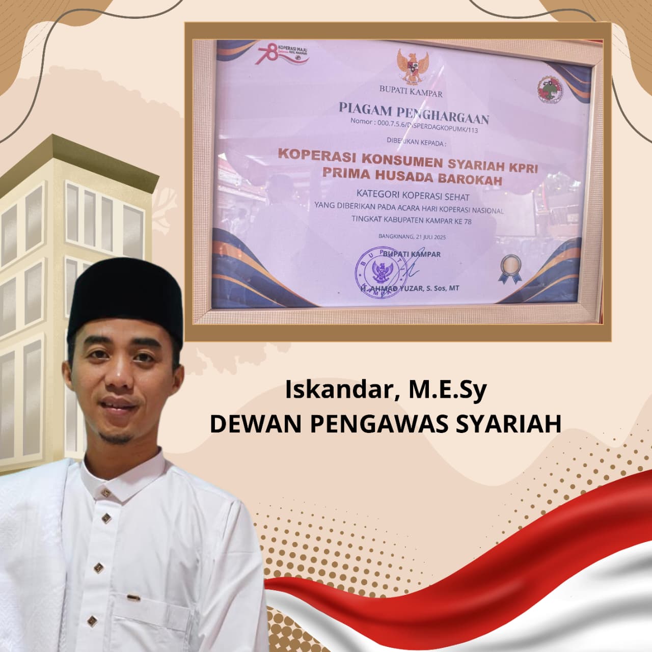 Penghargaan tersebut menjadi wujud nyata dari keberhasilan koperasi dalam menerapkan prinsip-prinsip syariah, tata kelola yang sehat, dan pelayanan yang memberdayakan anggotanya. Iskandar, M.E.Sy, yang merupakan Penyuluh Agama Islam Bangkinang Kota sekaligus Dewan Pengawas Syariah (DPS) koperasi, turut mengungkapkan rasa syukurnya atas capaian tersebut.