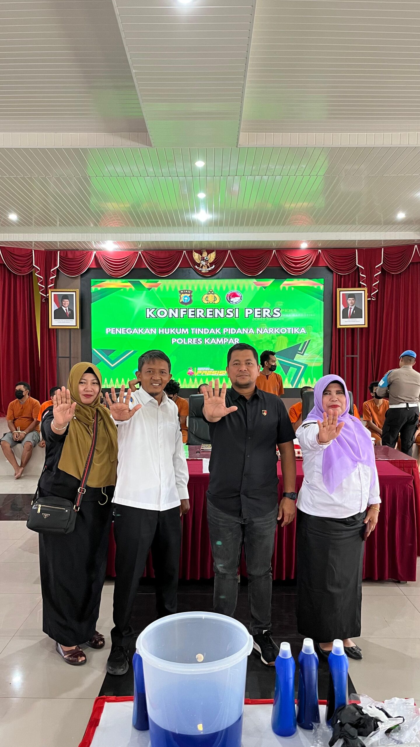 Pemusnahan barang bukti ini dipimpin oleh Kasat Narkoba Polres Kampar, Markus T. Sinaga, SH, MH. Hadir pula Ketua Pengadilan Negeri Kampar, Kepala Kejaksaan Negeri Kampar, Kepala Lapas Kelas II A Bangkinang, penasihat hukum tersangka, serta insan pers lokal dan nasional. BNK Kampar mengutus tim yang terdiri dari Adi Jondri Putra, S.Sos.I, Indah Febriyenti J, S.Pd, Nopri Rahman, Nurbaiti, S.Sos, dan M. Farhan Ananda.(***)