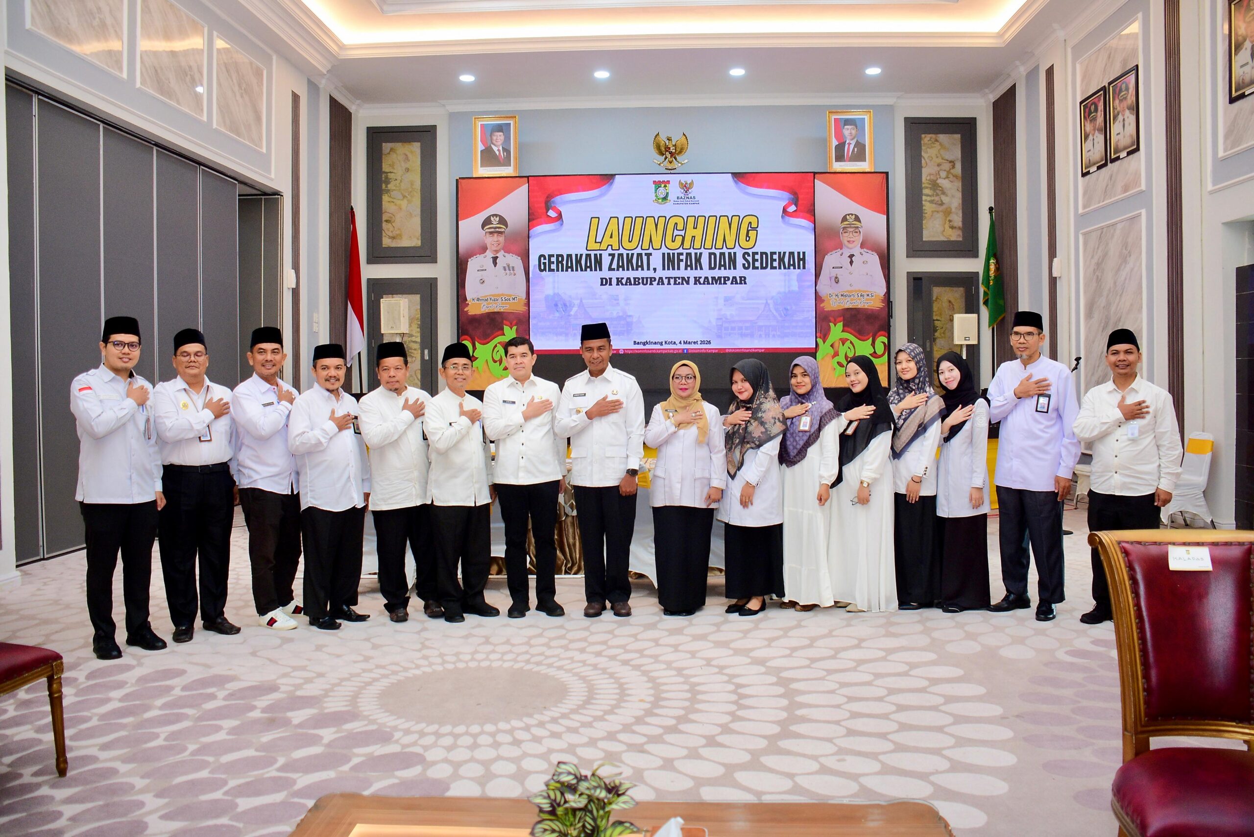 BANGKINANGKOTA-AURAPOS.ID-Mengambil momentum bulan suci Ramadhan 1447 H, Pemerintah Kabupaten Kampar bersama Baznas Kabupaten Kampar Launching Gerakan Zakat, Infak dan Shodaqoh, yang diselenggarakan di Aula Rumah Dinas Bupati Kampar, Rabu (4/3/2026).